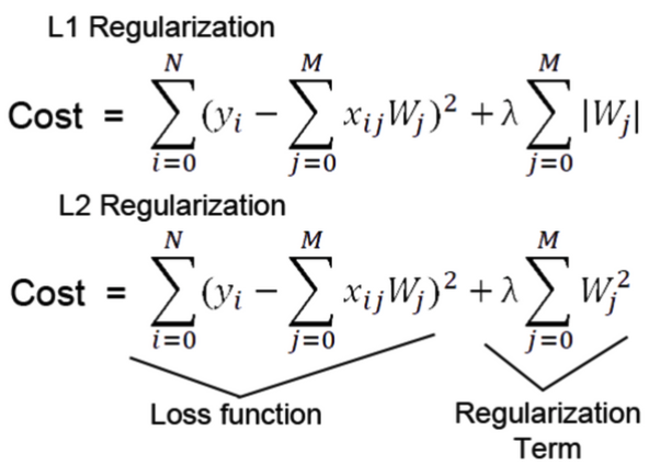 학습을 위한 loss function에 regularization 텀을 추가해 줌으로써 모델의 weight을 가능한 작게 제한할 수 있다.
