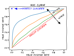 여기서 커브의 아래 넓이를 계산해서 분류기의 성능을 비교하기도 하는데,