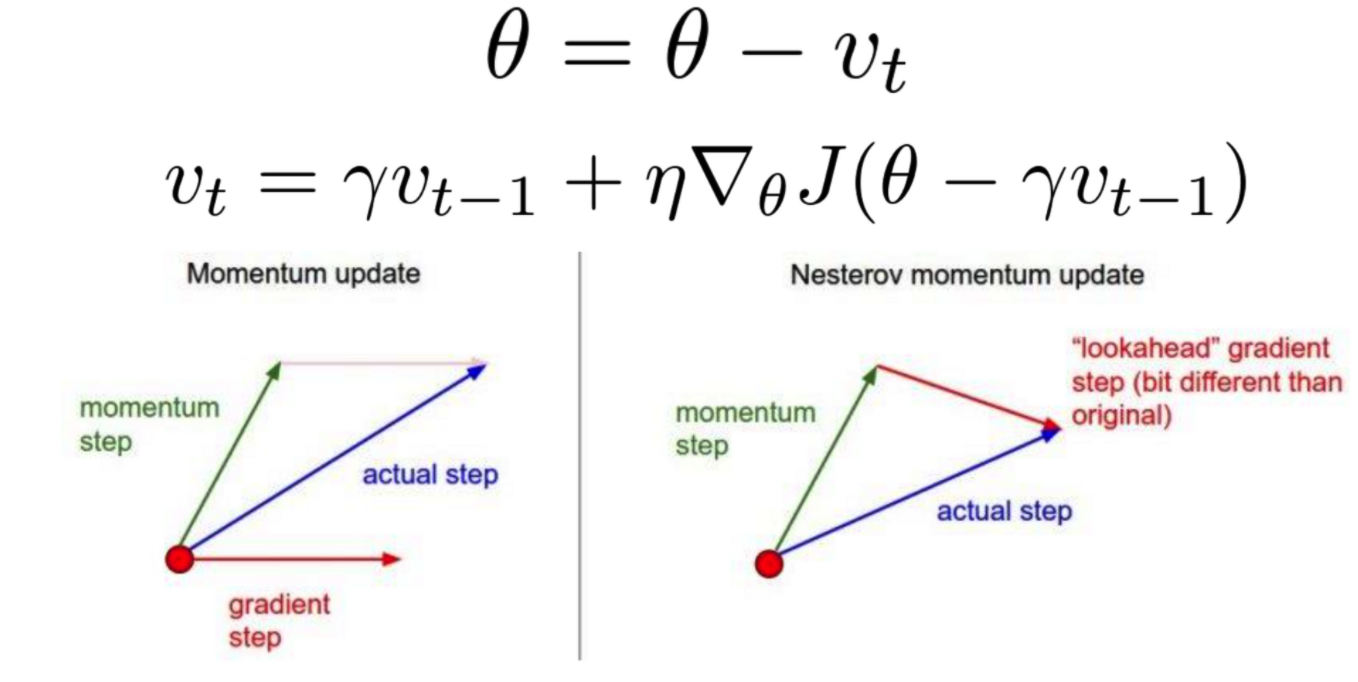 즉, 현재 파라미터 기준으로 모멘텀 만큼 이동 한 후에, 기울기를 구한 후 이동하는 방식.