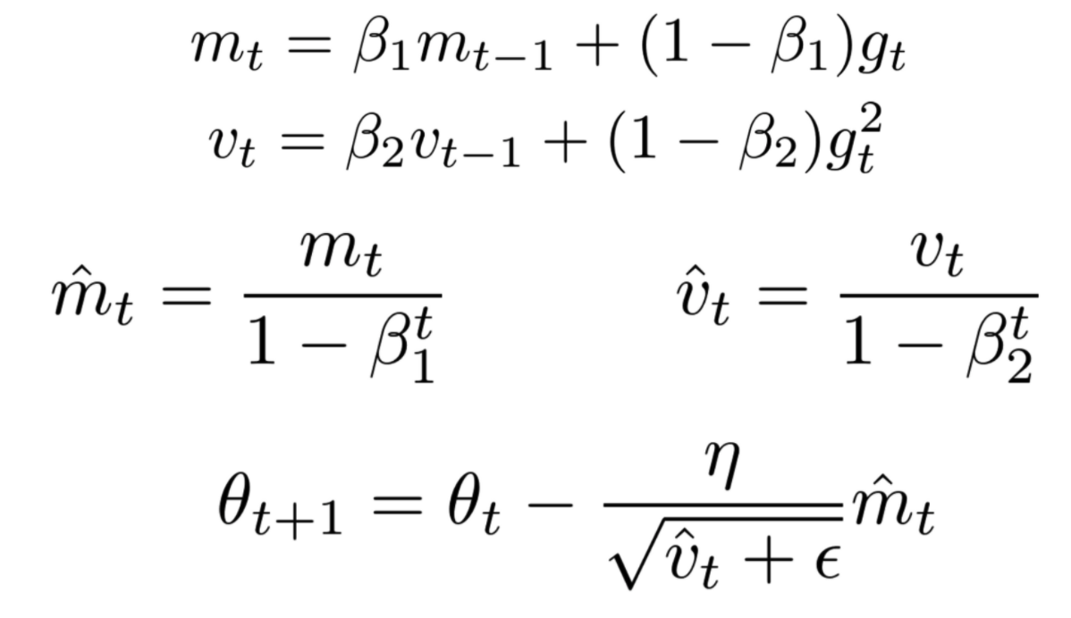 일반적으로 beta_1=0.9, beta_2=0.999으로 초기화 된다.