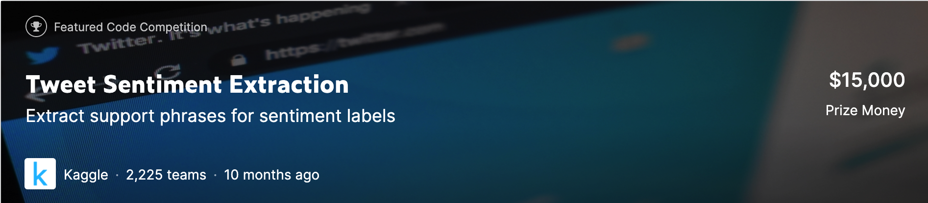 작년에 참여해서 은메달을 획득했던 Kaggle Tweet Sentiment Extraction 대회에서